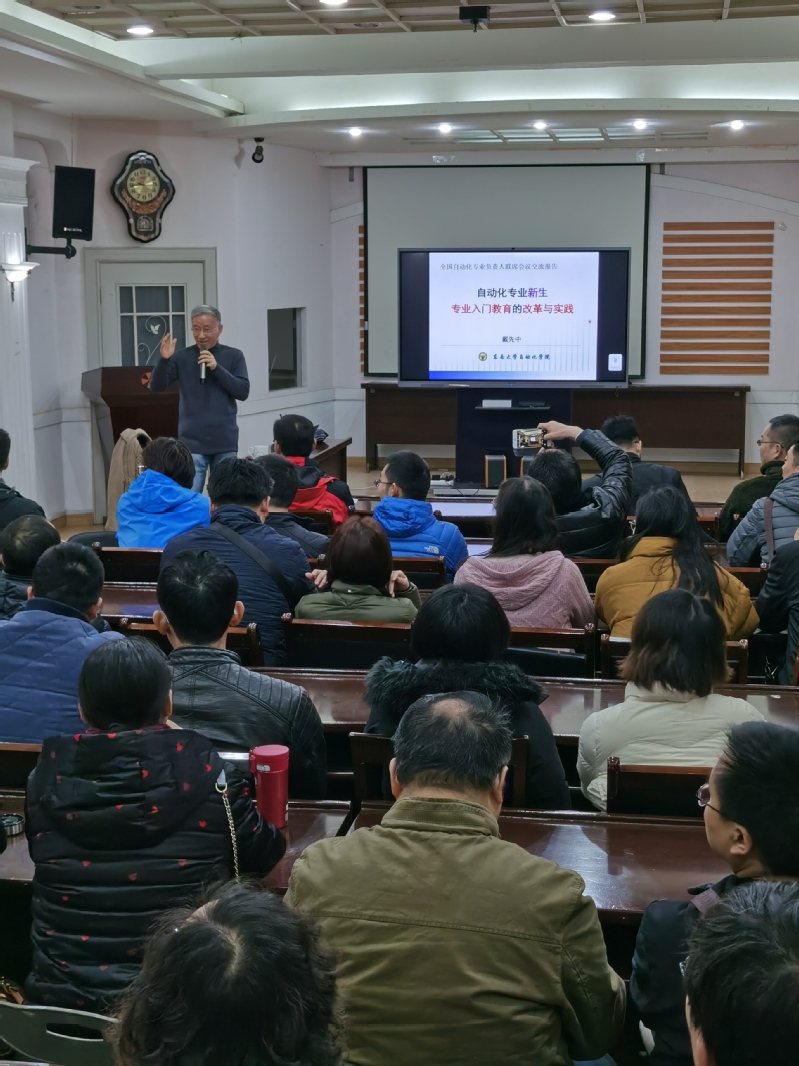 11月29日,东南大学教授、博导,教育部高等学校自动化类专业教学指导委员会副主任委员戴先中应公司邀请,做题为“自动化新生入学专业教育改革”的报告。报告会由电子信息学院经理朱志宇教授主持,电信学院师生100余人参加了报告会。