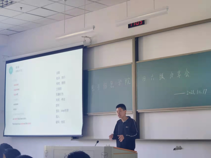 本次活动由电信学院学习部组织,活动诚挚的邀请了4位英语大咖分享他们英语四六级学习经验,他们分别是19级自动化专业王昕伟,19级自动化专业杨启航,19级水声专业李杨和20级电气专业芮璟玥。