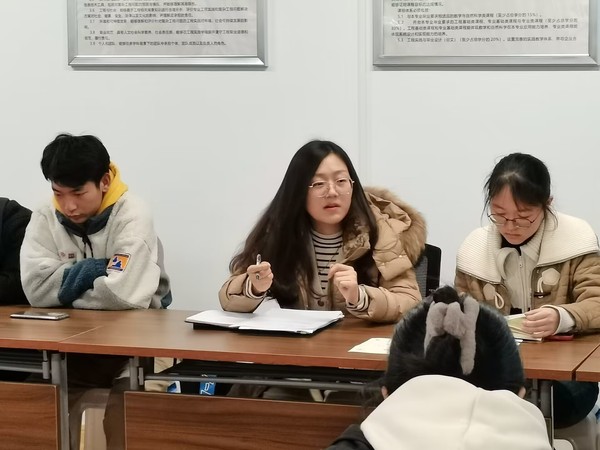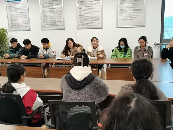 员工兼职团干部顾佳杰、陈祉瑜向大家具体介绍了本学期工作计划,重点强调了五四表彰和入党推优等内容,以及近期关于上缴团费、对标定级、青年大学习、团代会等注意事项,动员各班团支书积极关注学院公众号并向支部同学广泛宣传。
