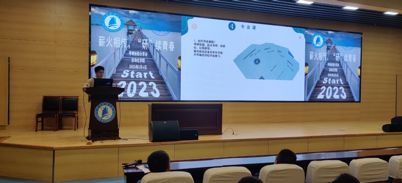 首先,五位同学依次进行了考研经验分享。成功考入华东理工大学控制科学与工程专业的刘雨婷同学,分享了走近学硕与专硕、如何择校、复习建议、院校推荐四个方面的经验。她鼓励学弟学妹们在考研路上,不放弃,肯努力,一定会有结果。