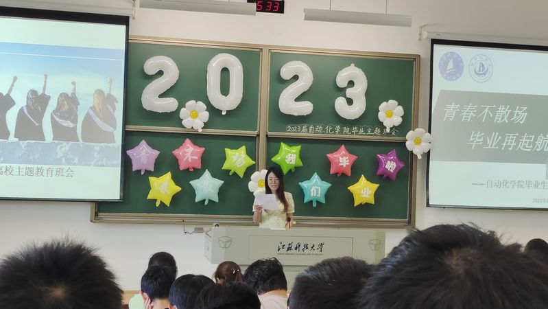 班会中,首先由曹老师根据各时间节点,从毕业审核、诚信考试、毕业典礼、文明离校等4个方面清晰地阐述了毕业生离校前应当注意的事项。此外,曹老师真诚地向各位2023届的自动化学子们寄语:前途似海,乘风破浪,毕业快乐!