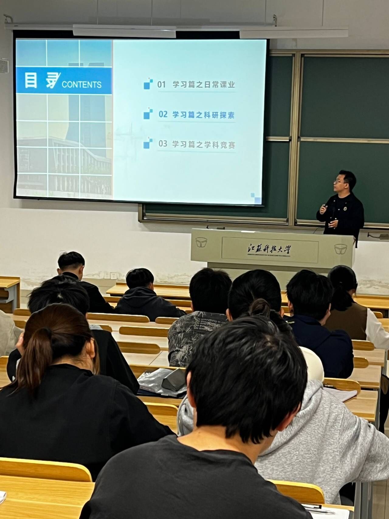 自动化专业学习经验分享会上,薛浩同学从日常学习、科研创新、学科竞赛三个方面分享自己的大学奋斗经历并且强调了学习态度的重要性,学长鼓励同学们学会求知,在求知的路上要下决心、下狠心,强调了对专业知识的扎实学习和理解的重要性,并提到了一些学习方法和技巧,鼓励同学们主动请教老师,加强与同学间的学习互助,通过积极参与课堂讨论和实践操作来提升自己的专业水平。