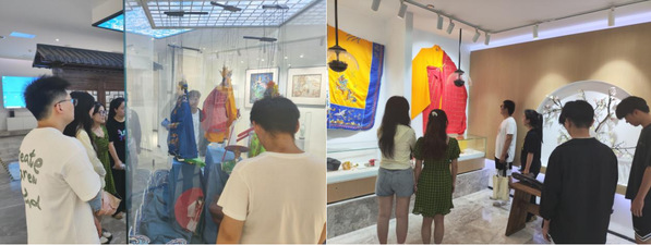 接下来,实践团来到了镇江市非物质文化遗产保护中心,其中“白蛇传传说文化展示厅”引起了同学们浓厚的兴趣。作为中国四大民间传说之一的“白蛇传传说”,不仅是镇江市的骄傲,更是国家级非物质文化遗产的代表。展示厅内陈列着众多国家级和省级非遗传承人的作品,以“白蛇传传说”为主题的民间工艺品琳琅满目,同学们在此驻足良久,沉浸在镇江传统文化的海洋中。