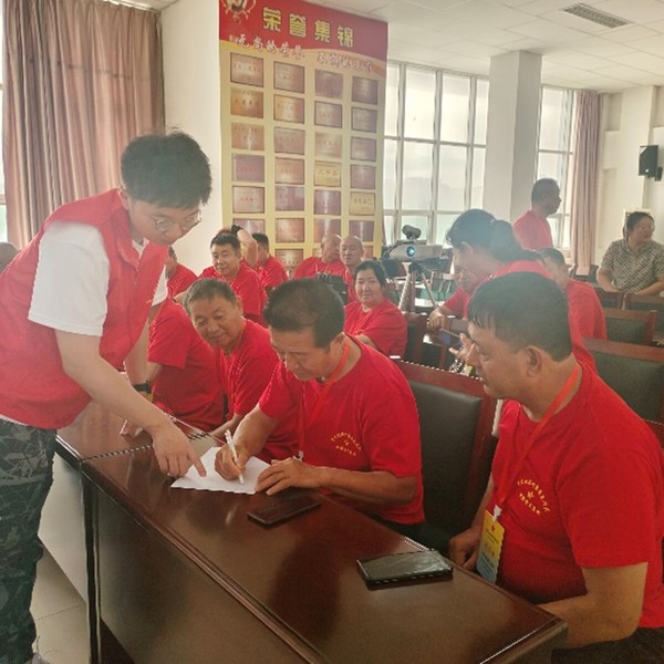 图为实践团成员帮助退伍军人填写健康问卷表。张京 供图