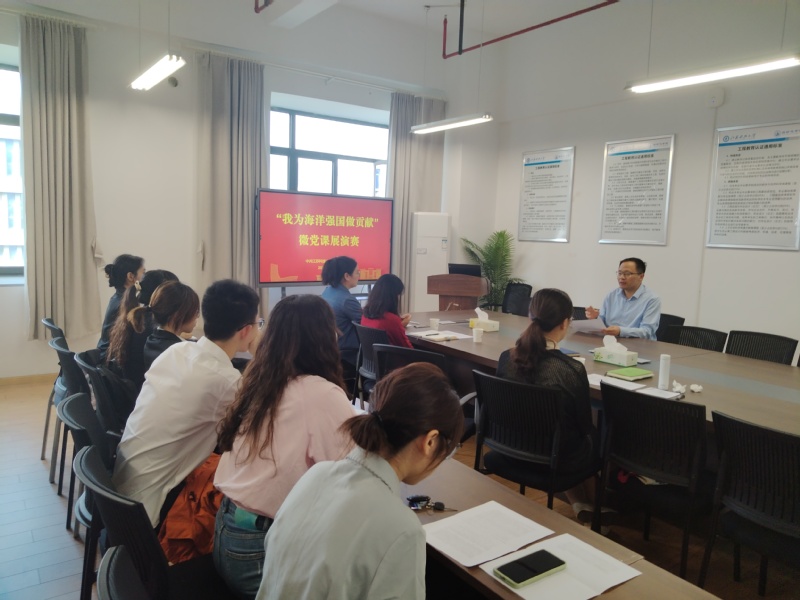 比赛结束后,学院副书记郭峰对选手们的表现进行了精彩点评。郭书记充分肯定了参赛选手的努力和付出,认为大家的微党课主题鲜明、内容丰富、形式多样,具有强烈的感染力和教育意义。同时,郭书记也对选手们提出了殷切期望,鼓励大家要进一步坚定理想信念,努力学习专业知识,提高自身综合素质,积极投身海洋强国建设的伟大实践,为实现中华民族伟大复兴的中国梦贡献自己的智慧和力量。