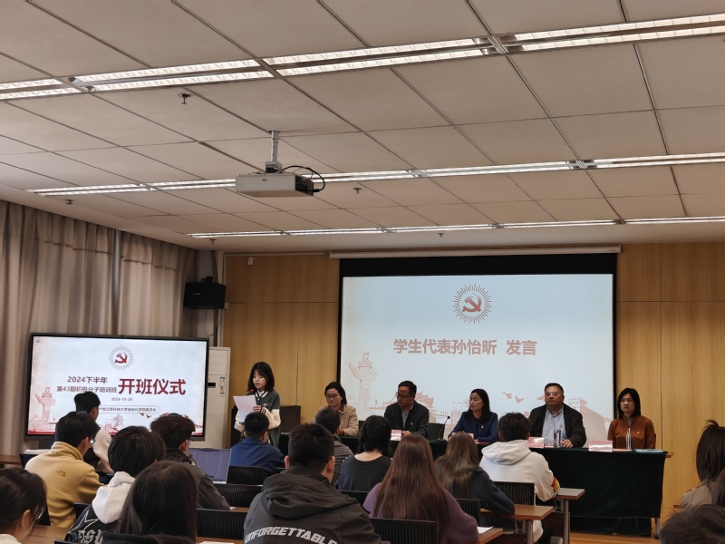 随后,学员代表孙怡昕上台发言,她表达了对党的无限向往和加入党组织的坚定决心,承诺将珍惜此次培训机会,努力学习党的理论知识,不断提升个人综合素质,争取早日成为一名光荣的共产党员,为实现中华民族伟大复兴的中国梦贡献青春力量。