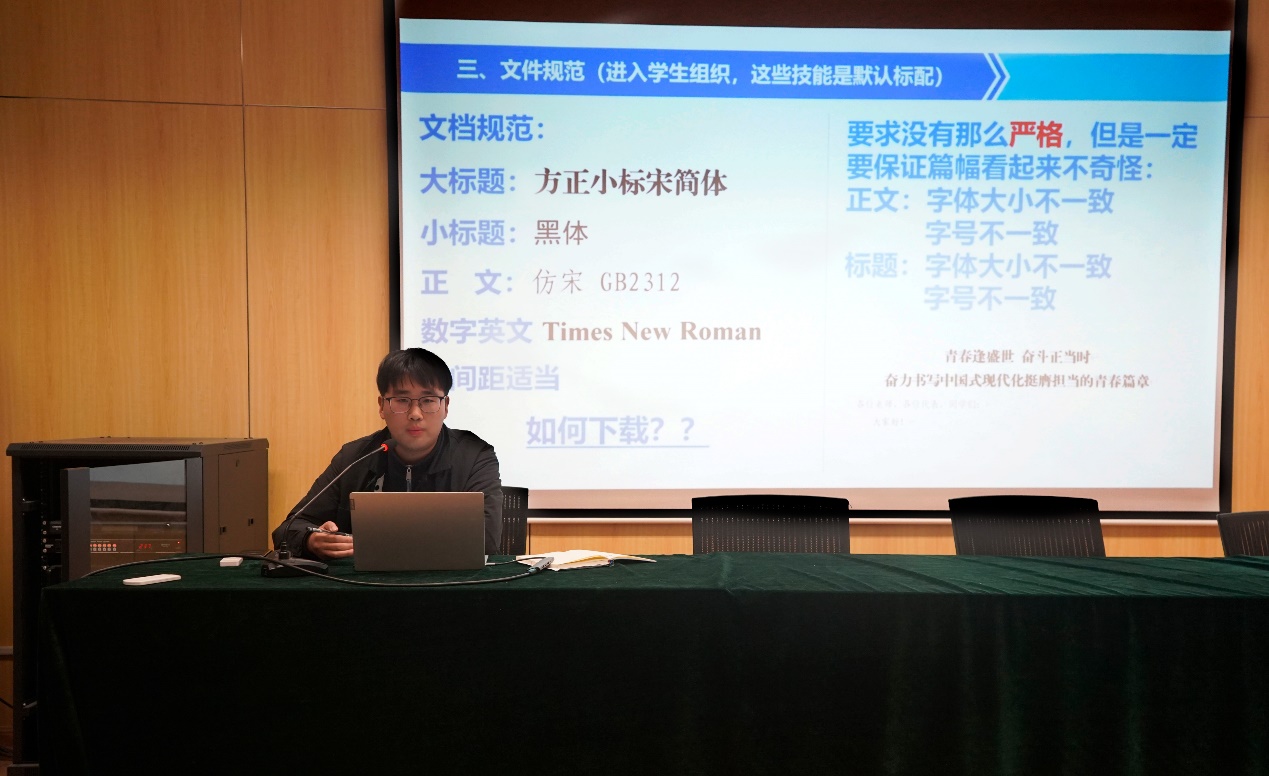 精辟解析,一词一句展露管理智慧。11月7日晚,戴毅杰同学主讲了组织内部管理、沟通协作等关键议题的重要性,并以实际案例为鉴,揭示了处理这些问题时准确性与清晰度的价值。在讲座的收尾阶段,主讲人系统地总结了针对活动策划、第二课堂及报销问题等主体内容的处理策略,为参与者提供了明确指导,使得同学们对解决组织运营中的难题有了更为深刻的理解。