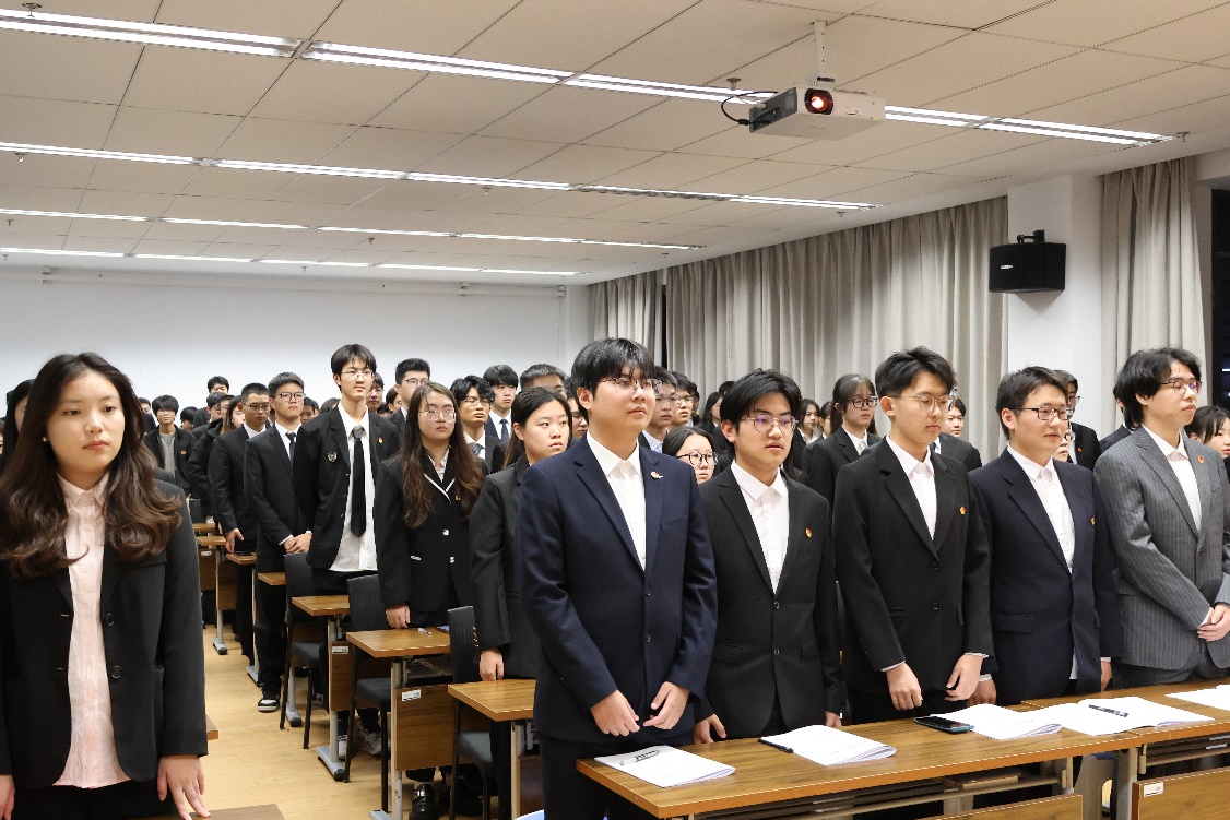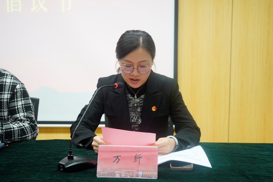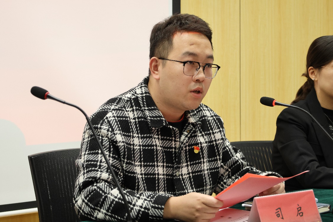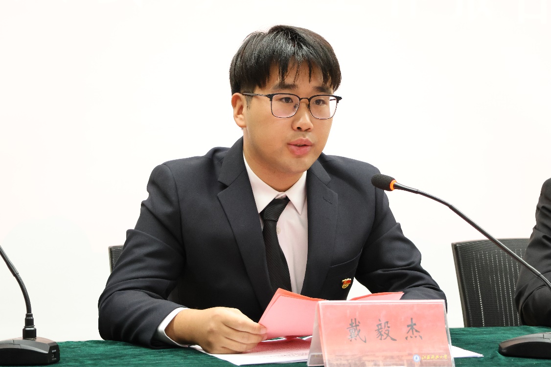 大会之初,《义勇军进行曲》与《光荣啊,中国共青团》相继奏响,参会成员们歌声萦绕会议室的每个角落,厚重而坚定,无不彰显着责任与担当。随后,院团委书记万纤宣读大会倡议书,并向同学们致以亲切问候。