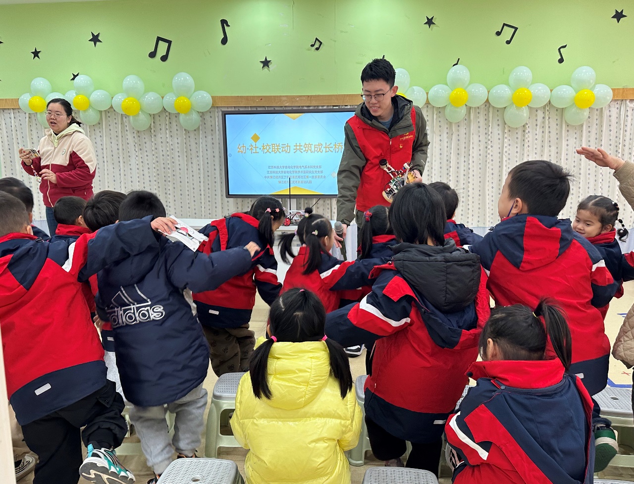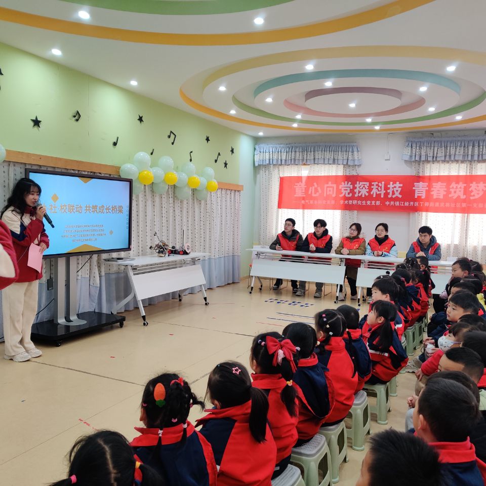为积极响应党的二十届三中全会精神,探索科技创新与高质量协调发展新路径。2024年12月6日,betway西汉姆联电气系本科党支部与学术型研究生党支部联合中共镇江经开区丁卯街道武将社区第一党支部开展了主题为“童心向党探科技,青春筑梦塑未来”的党建共建活动。“自信”一站式社区员工党员先锋队走进社区,通过生动有趣的方式向社区幼儿园小朋友们讲解科技知识,激发他们对科技的兴趣。