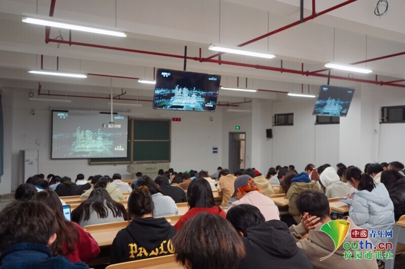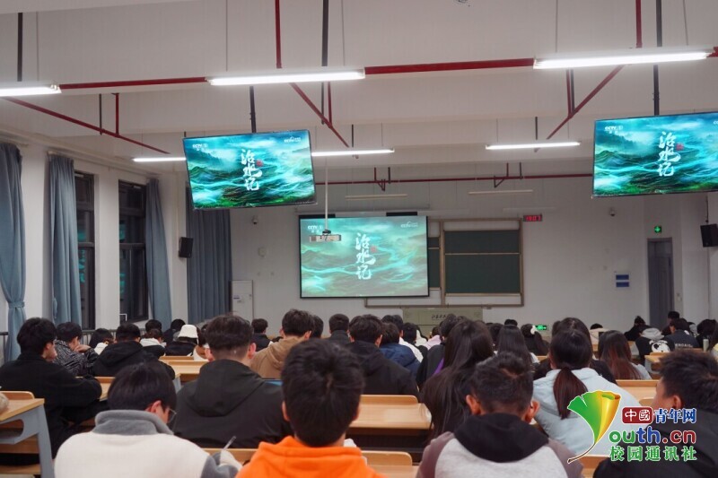 图为同学们观看纪录片《治水记》。中国青年网通讯员 韩熠桢 供图
