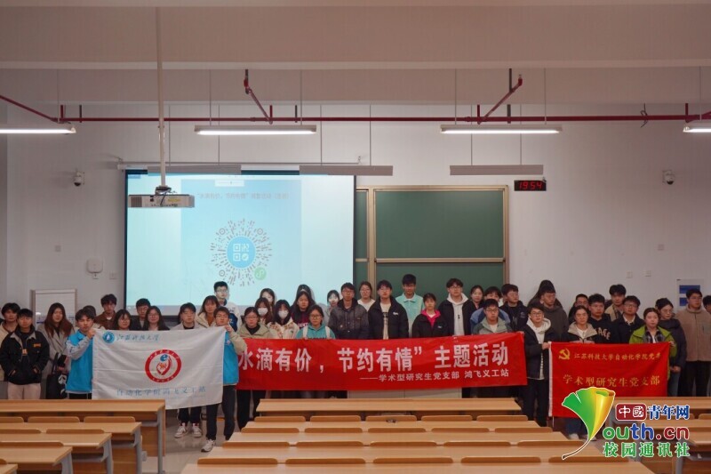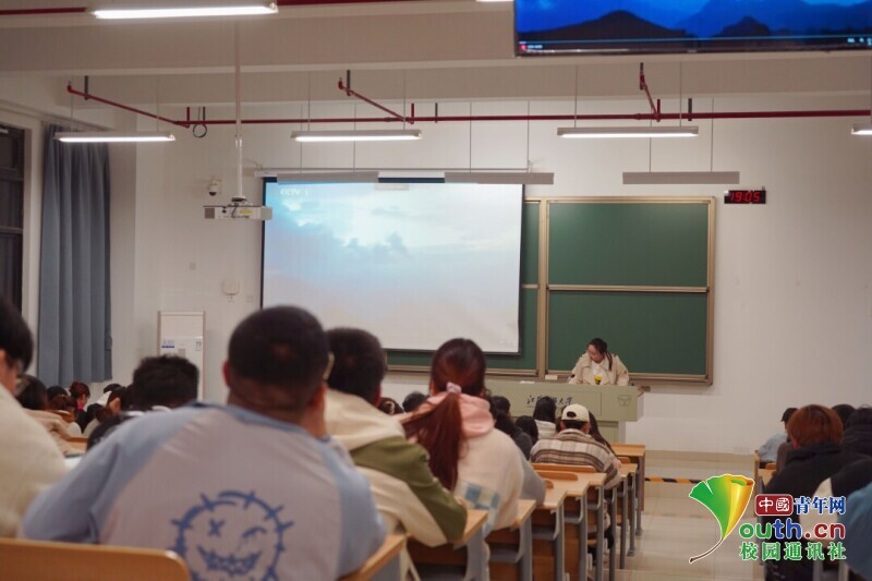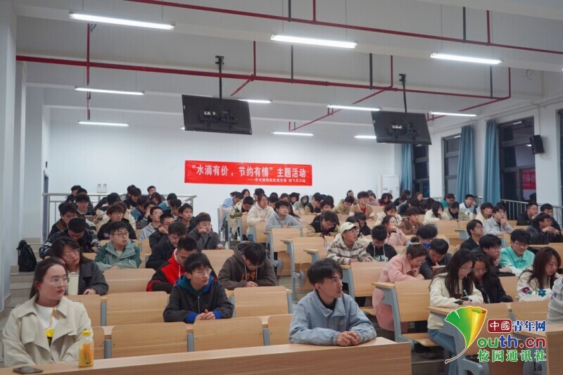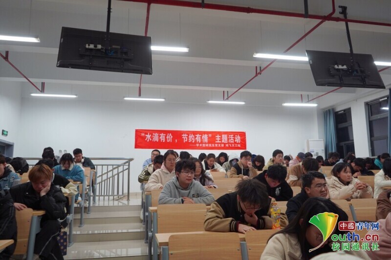 图为活动主持人为参与同学播放节水纪录片《治水记》——第二集。中国青年网通讯员 韩熠桢 供图