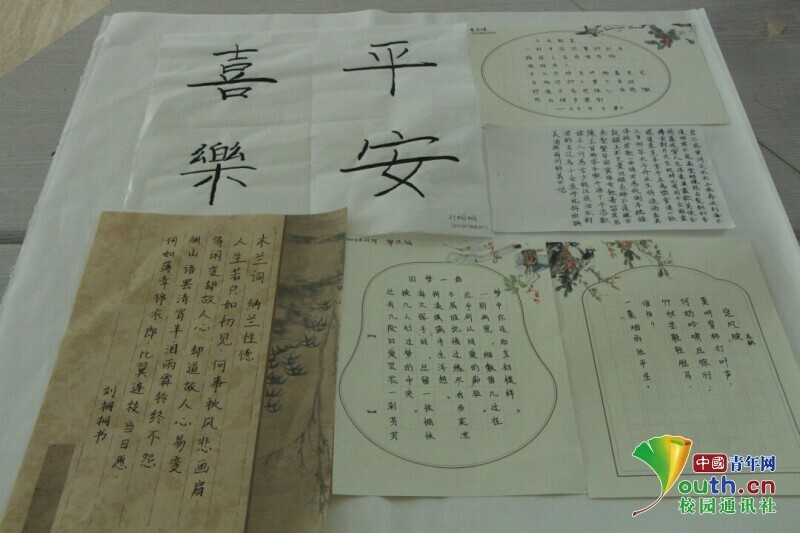 图为部分硬笔、软笔作品展示。中国青年网通讯员 韩熠桢 供图
