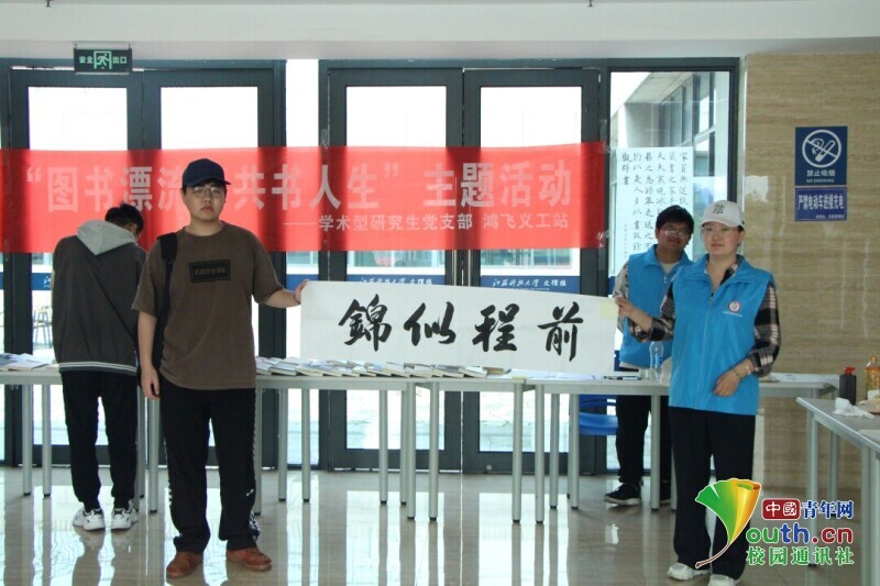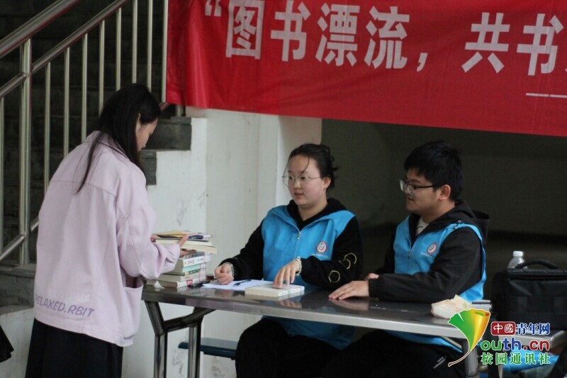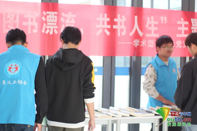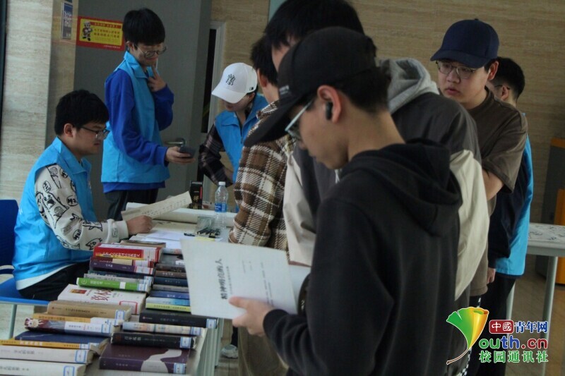 图为图书漂流活动现场,参与同学前来交换图书,与他人分享图书。中国青年网通讯员 韩熠桢 供图