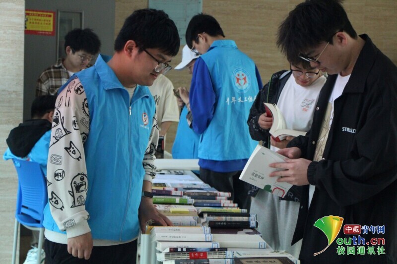 图为参与同学挑选自己喜欢的图书。中国青年网通讯员 韩熠桢 供图