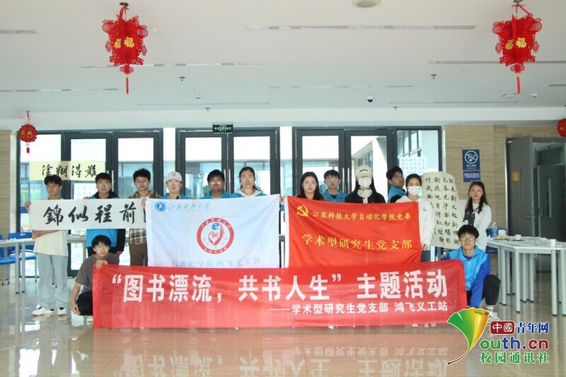 图为”图书漂流,共书人生“主题活动部分工作人员合影留念。中国青年网通讯员 韩熠桢 供图