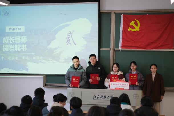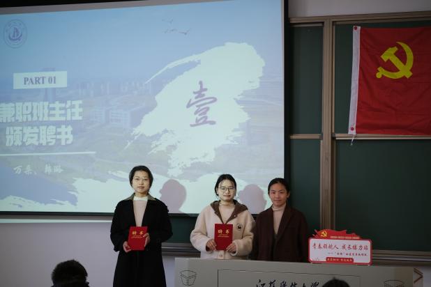 聘任仪式上,各班级辅导员为研究生兼职班主任和本科生成长导师颁发定制聘书与“领航人工作包”(内含班级员工档案、班级问题清单、生涯规划手册)。