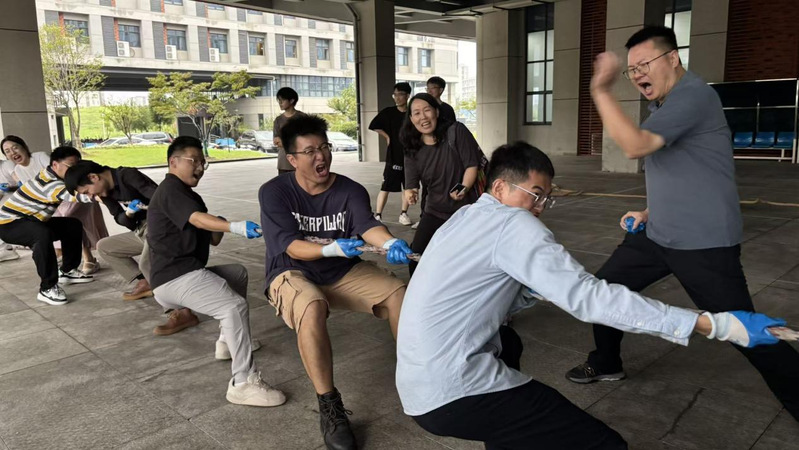 在决赛的焦点对决中,自动化系代表队与教学中心代表队陷入胶着。双方实力相当,绳子中间的红线在两队之间来回移动,僵持近3分钟,实在难分伯仲。场下观众的加油声浪一波高过一波,不少教职工自发组成“啦啦队”,为参赛队伍呐喊助威,现场成为一片欢乐的海洋。