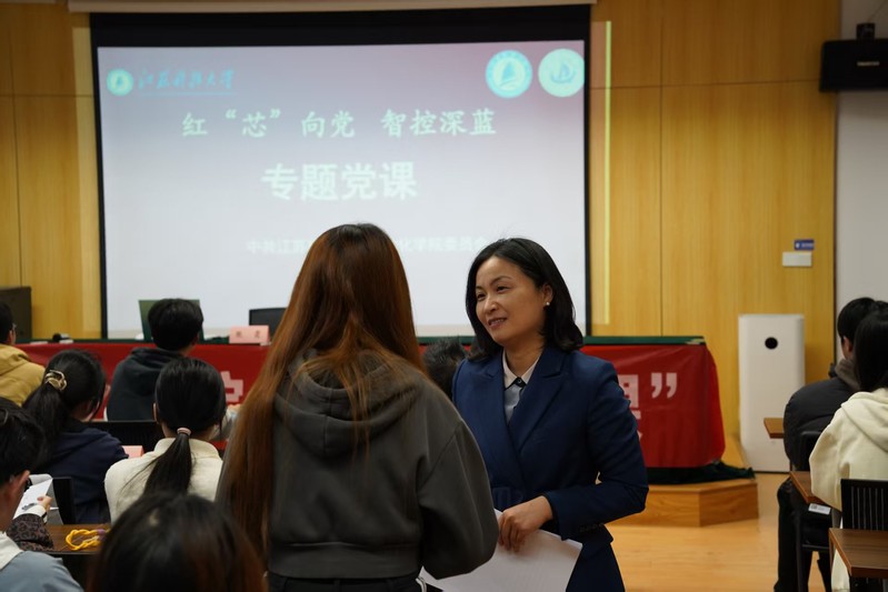 最后,张霞书记向全体新生发出了时代的召唤。她指出,生逢强国建设、民族复兴的伟大时代,青年一代责任重大、使命光荣。希望同学们能够铭记历史,从中汲取精神力量;认同“红芯向党”的价值追求,端正入党动机;践行“智控深蓝”的专业抱负,刻苦学习,练就过硬本领。她呼吁有志青年积极提交入党申请,主动接受党组织的培养和考验,努力成长为担当民族复兴大任的时代新人,让青春在为国家、为人民的奉献中焕发出绚丽光彩。