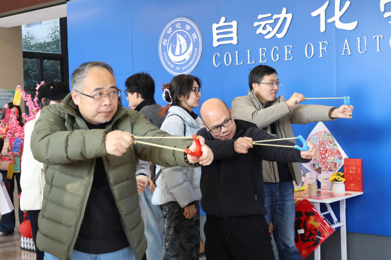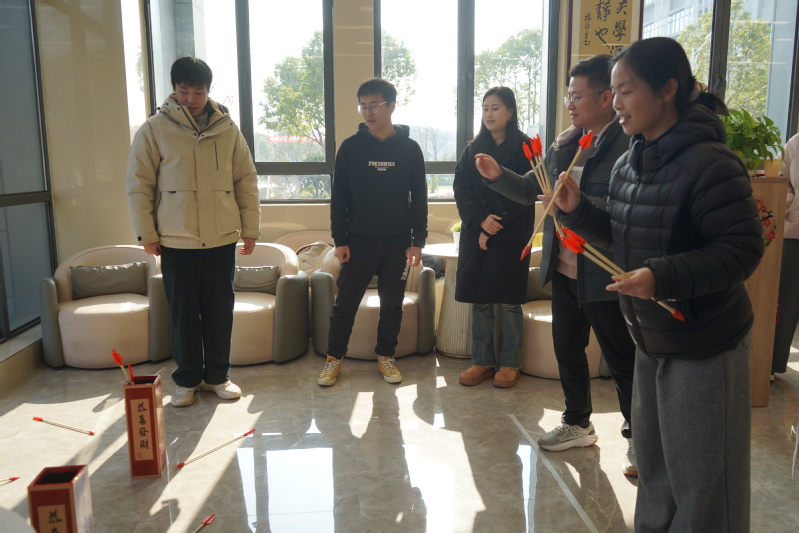 “福矢入吉壶”项目重拾传统雅趣,活动区域前人头攒动。师生们手持箭矢,凝神瞄准,一支支箭矢划出优美弧线投向壶中,精准入壶的瞬间总能引发现场阵阵喝彩。参与师生纷纷表示:“该项目看似简单,实际操作起来难度不小,非常考验专注力与投掷技巧。”