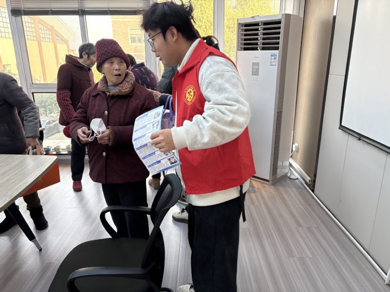 “叔叔阿姨们注意了,这类骗子都擅长用亲切语气套近乎,要么说‘我是你家孩子,在外出事急用钱’,要么讲‘这保健品吃了能治病还能返钱’,目的就是先让大家放松警惕,再一步步哄着掏钱。”一位实践团成员指着手册上的“诈骗套路拆解”板块,结合近期本地发生的真实案例讲解道。同时,他还针对性补充防范方法:“要是接到陌生转账请求,先别慌,一定要用您平时常用的电话打给孩子确认;遇到推销高价保健品的,记得问清楚对方资质,或者等家里年轻人回来商量,千万别当场冲动付款。”