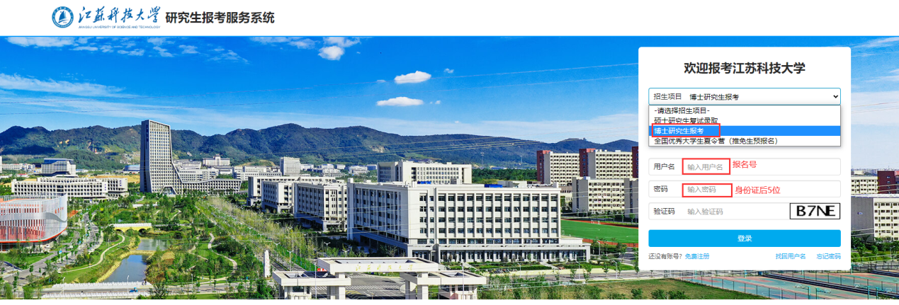 注:登录页面中“招生项目”需选择“博士研究生报考”