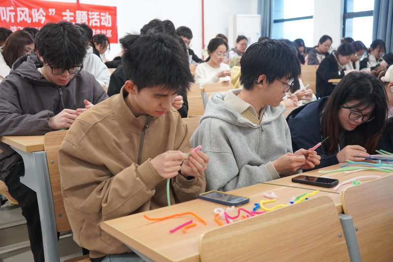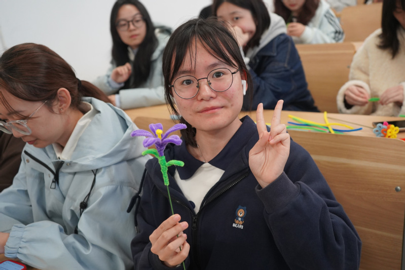图为同学制作扭扭棒花朵(李文俊 供图)