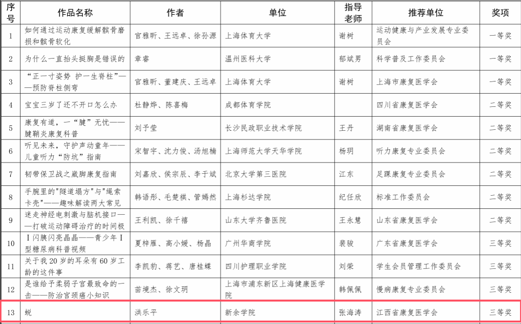 近日,首届中国康复医学会科普大赛获奖名单公布,betway西汉姆联24护理2班员工洪乐平首次参赛并荣获大赛三等奖。首届中国康复医学会科普大赛由中国康复医学会主办,以“康复赋能,主动健康点亮生活”为主题,受到了全国各分支机构与省级康复医学会的广泛关注。大赛共收到来自73个分支机构、27个省级康复医学会推荐的1504件参赛作品。经过初赛、复赛和决赛的层层严格选拔,评选出职业组、员工组(含图文类、视频类、表演类)一、...