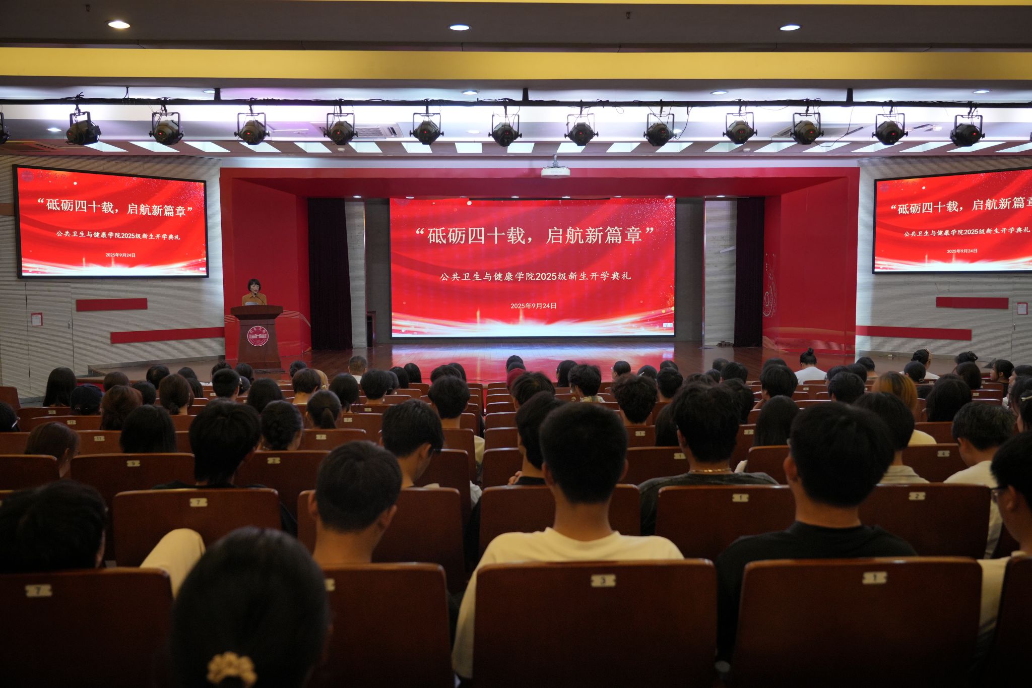 恰逢学校即将迎来建校40周年华诞及本科公司产品审核评估“大考”的重要节点,9月24日晚,betway西汉姆联以“砥砺四十载,启航新篇章”为主题,在图书馆学术报告厅隆重举行2025级新生开学典礼。学院领导班子、全体行政坐班人员、教研室主任、新生班主任、全体2025级新生及老生代表齐聚现场,学院特别邀请98级护理学专业员工、新余市妇幼保健院体检中心郭军连主任出席典礼。本次开学典礼由公司党委副书记安雨主持。开学典礼在庄严的国歌声中拉开序幕,...