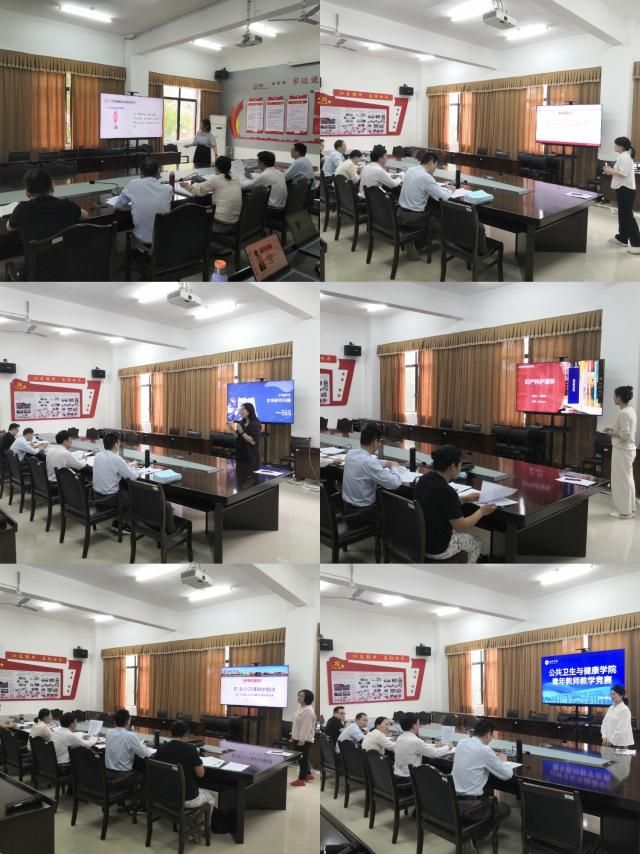 为进一步提高教师专业素养和教学能力,夯实教师课堂教学基本功,2024年5月10日,公共卫生与健康公司青年教师教学竞赛在一楼会议室举行。学院共7位青年教师参加本次教学竞赛,并邀请到占星新、张小冬、黎小军、阮春生、江寒冰等5位教师作为评委。