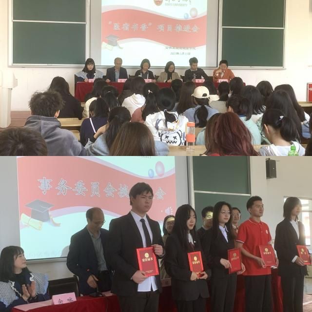 我院傅雨科长主持会议,2022届事务委员会成员颁发荣誉证书、及颁发新入职成员颁发聘书。随后由员工代表进行发言,表示构建学院优良学风创建良好的寝室文化的重要性,通过“医宿书香”项目激励广老员工,营造活力向上、充满浓郁书香氛围的宿舍文化,德智体美劳全面发展,宿舍学习风气浓厚,成员学习目的明确,营造书香氛围的宿舍文化,倡议各宿舍通过项目系列活动相互促进共同进步,为学院营造浓郁的寝室书香氛围。