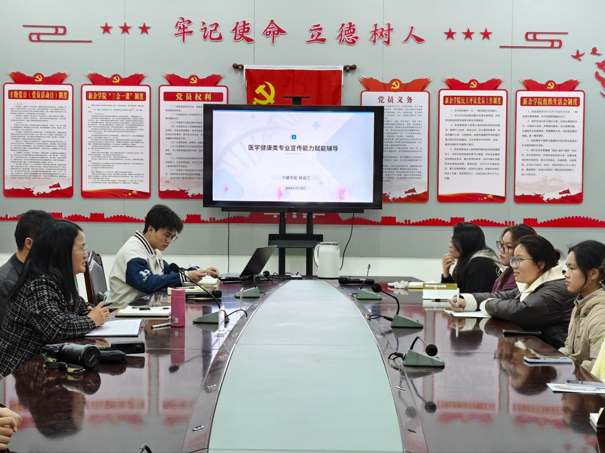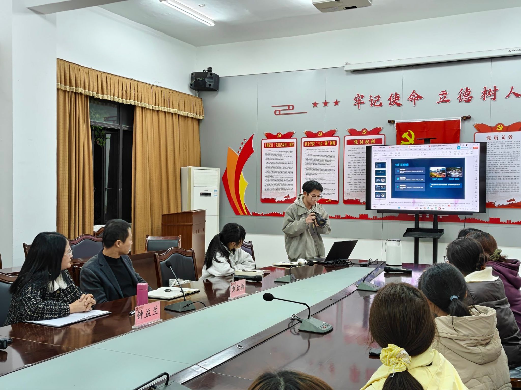 会上,刘欣沂分享了人工智能发展趋势,引导员工思考如何高效运用AI赋能学习与工作。23级护理2班熊鑫结合自身经历,生动讲述了如何将摄影兴趣发展为突出能力。