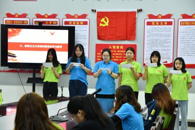 4、团支部书记带领新团员宣誓,老团员重温入团誓词。