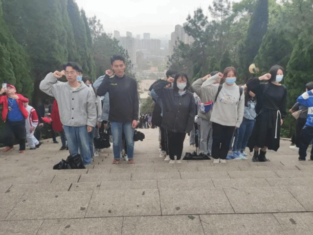 在仰天岗革命烈士纪念碑前,同学们庄严肃立,瞻仰革命烈士英雄纪念碑,为英勇牺牲的革命英雄默哀,表达对革命烈士的深切缅怀和无限敬仰。