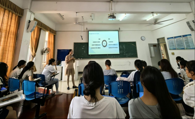 占星新经理从健康服务与管理的专业定位、主要课程、专业教学资源及毕业去向等方面展开介绍,鼓励员工树立专业自信,积极投身医疗健康事业。
