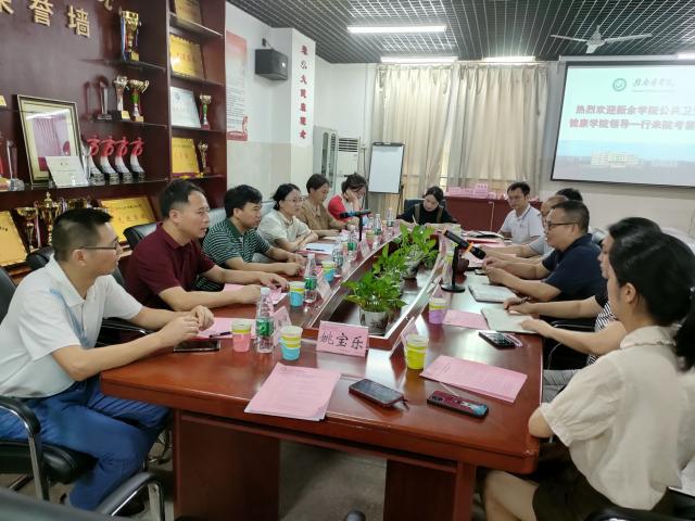 在赣南医学院,卫健学院一行分别与护理学院、康复学院及公共卫生与健康管理学院相关负责人及教研室主任进行了座谈,会上就学院发展、专业建设、人才培养方案的修订、教师科研基本情况及成效等方面开展了深度交流。