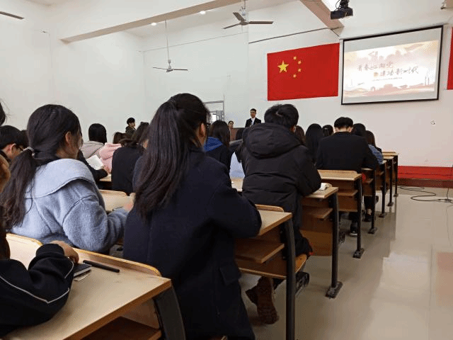 本次主题团日活动分为三个环节:一是由学院第九届团委员工会主席舒民耀带领全体团员青年重温入团誓词,表达为中华民族伟大复兴而努力奋斗的决心与魄力;二是由学院第九届团委员工会副主席徐磊分享员工会工作经验,他强调,做为一名新时代团员干部必须树牢“四个意识”、坚定“四个自信”,坚决做到“两个维护”,真正立足岗位,全心全意为同学服务;三是由学院兼职团委副书记叶红生动形象地讲解“五四”精神和共青团的起源历史,回顾峥嵘岁月。