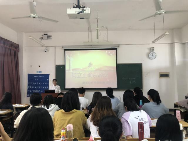 在各班开展主题班会之前,学院团委召开团支书培训会议,对各班团支书进行“学习宗教知识,培养正确宗教观”主题的培训,对团支书开展主题班会进行指导。带着对宗教知识的强烈兴趣,同学们积极地参与班会之中。在团支书的悉心组织下,班会有序开展。首先,团支书带领下同学们一起了解了马克思主义宗教观和党的宗教政策,真正了解了什么是宗教,党对宗教工作的教育方针以及合法宗教活动。随后,团支书带领同学们一起学习了我国对宗教的相关法律规定,并着重学习了邪教知识,同学们深入地了解到了邪教的危害。