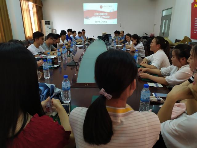 630中午,护理与康复学院在学院一楼会议室举行2019届毕业生座谈会。公司经理吴玉华、党委书记李晖和各科室负责人出席了本次座谈会,部分2019届毕业生参加了本次会议。