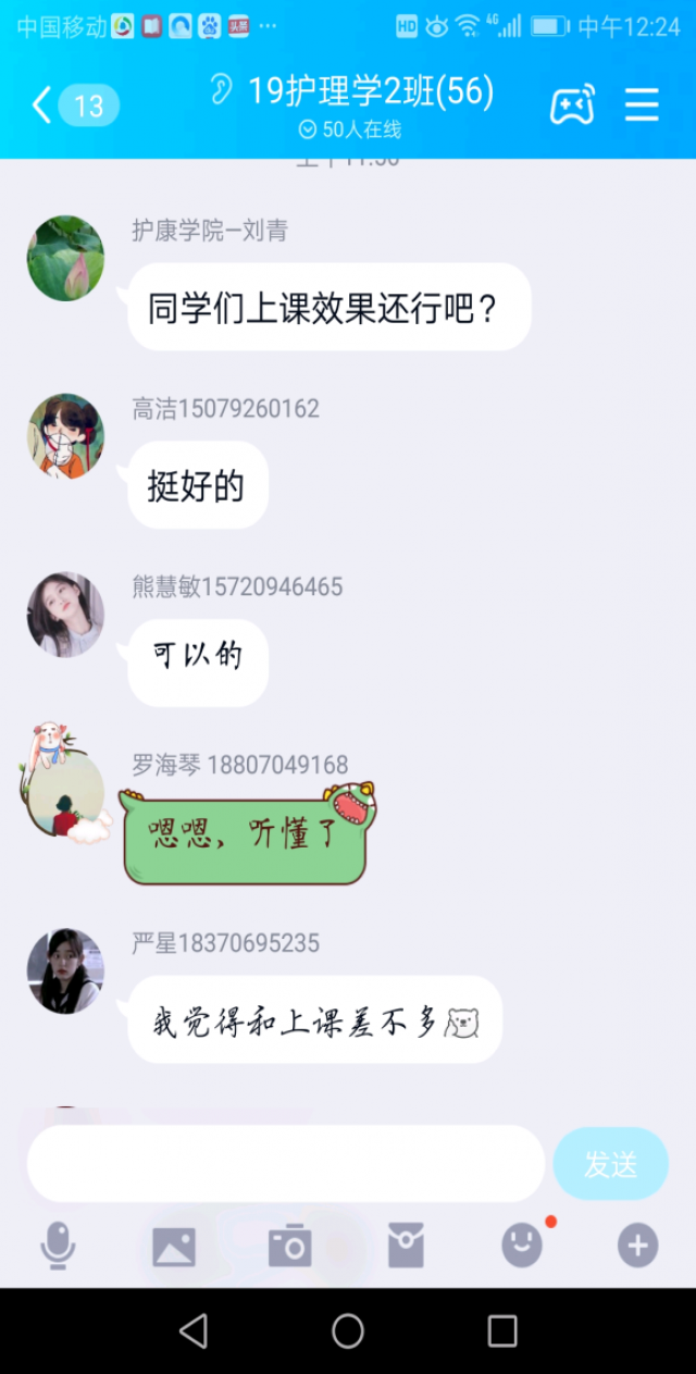 护理与康复学院共有65门课完成了网上建课,主要依托超星、中国大学MOOC智慧树和学堂在线开展线上教学。在超星等平台互动不流畅时,老师们启用应急教学预案,利用QQ直播钉钉和腾讯会议等平台进行直播。吴玉华经理用学习通录播课程,同学们有不懂的疑难知识点可以错开高峰期反复回看,提升学习效率。同时她还利用学习通群聊功能关注同学们心理健康问题,做到防疫学习两不误。刘青老师利用腾讯会议开展课程直播教学,同屏教学PPT,抽象知识点可以运用白板功能及时讲解,员工反映和平时面授上课效果一样,反响良好。