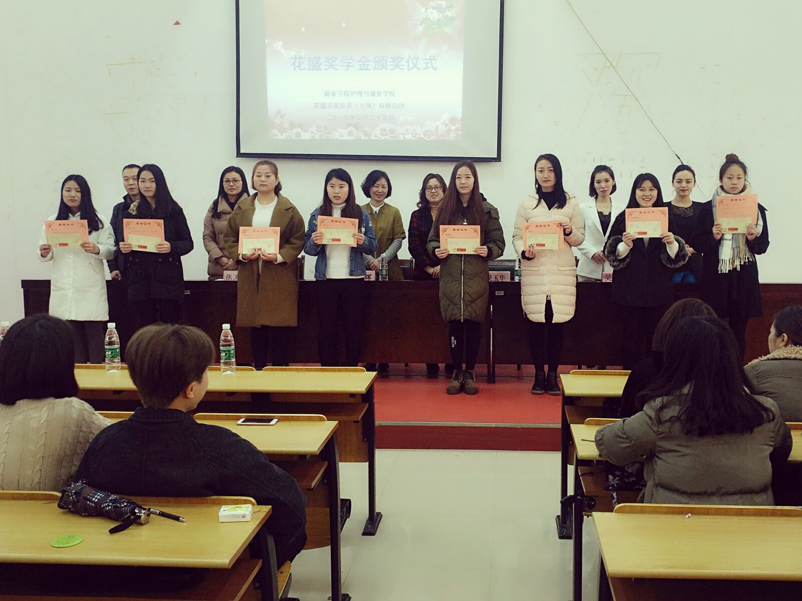 颁奖仪式在热烈的掌声中圆满结束,恭喜获得花盛奖学金的同学们,希望其再接再厉,也感谢花盛企业对公司的支持,相信护理与康复学院与花盛公司会越来越好。